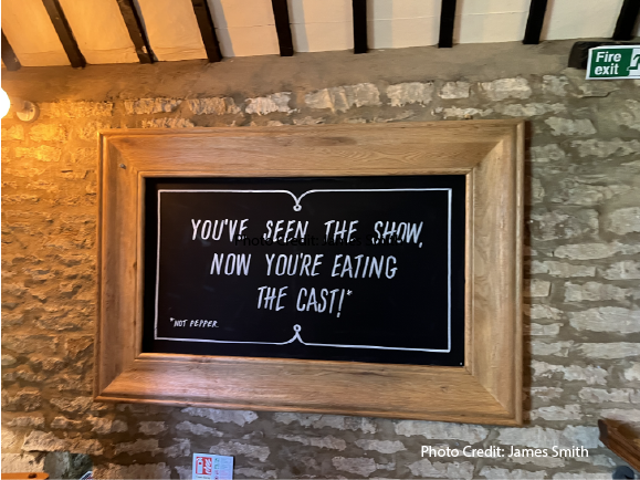 Our restaurant booking allowed us plenty of time to select a Hawkstone brew and enjoy a sunny afternoon on the terrace before heading in to dine. Everywhere you looked there were fun reminders of just where you were, and that you were experiencing what you had seen on TV firsthand, and the storyline that had led you here.