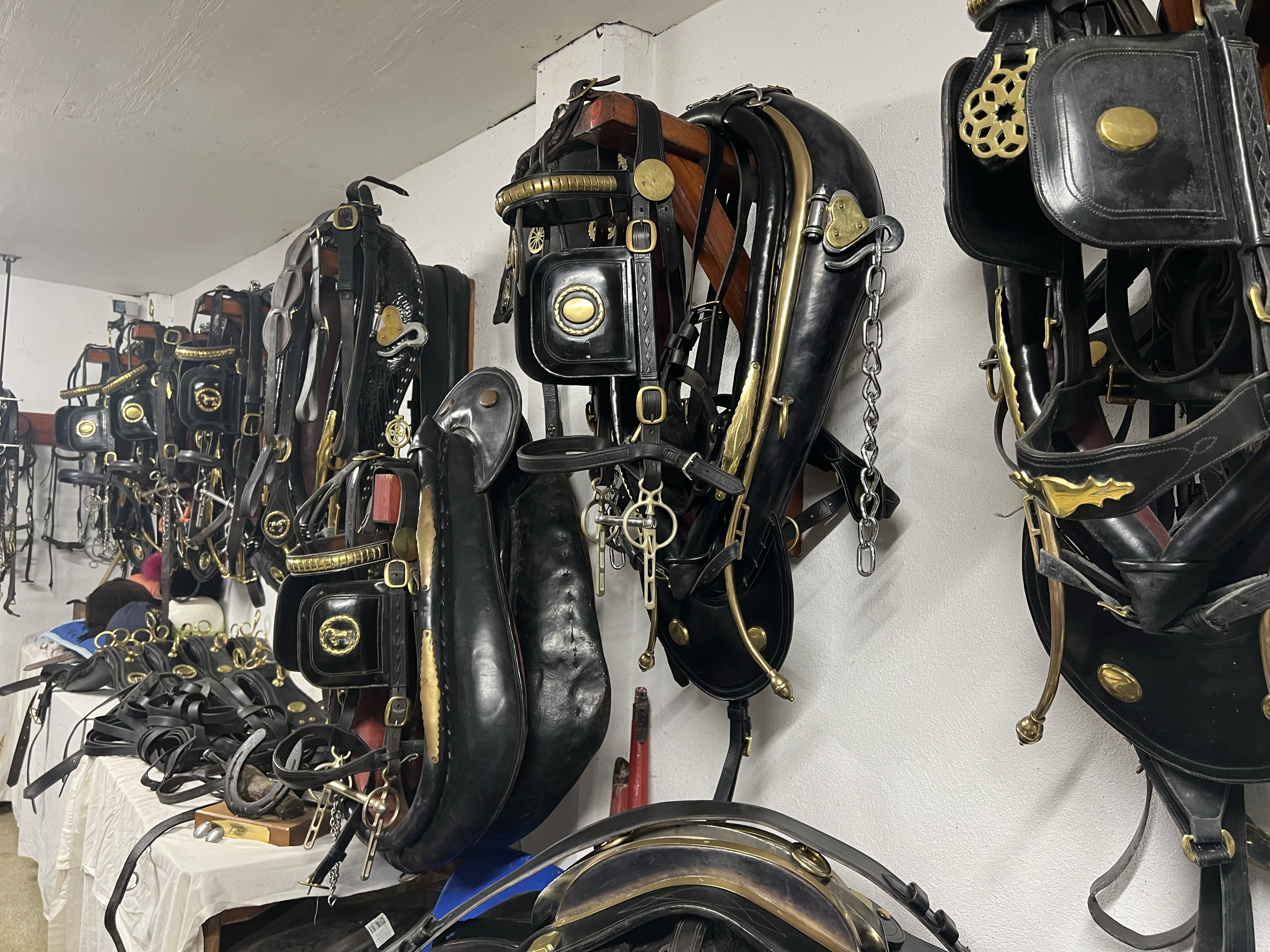 The center even has its own tack repair machines on hand. Antiques in their own right but still highly functional for the odd repair. If you are driving a team of Suffolk Punches (or driving or riding any horse for that matter), you don’t want a broken rein or bridle when you are out and about and here as everywhere, tack care is critical.