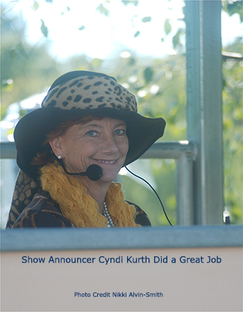Beth Jenkins, who has worked tirelessly for this organization for many years now, was darting about in her golf cart, attending to the details like the pro she is known to be. Centerline Events ran the office smoothly and Debra Carr-Kirk headed up an army of very diligent and educated volunteers. While extremely professional announcements were heard in Ring 1 from the wonderful Cyndi Kurth, an experienced CDI level announcer in both dressage and also FEI Eventing, I managed to capture her in this photo in a moment of quiet, she grinned with surprise and wagged her finger telling me off - but too late. The shot is the shot, and she looks lovely doesn't she?