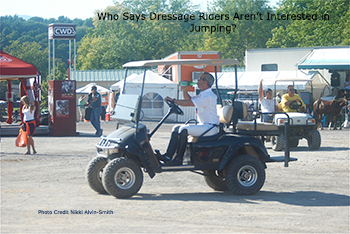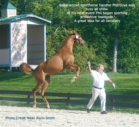 An auspicious start to day one tested the experienced staff of the New England Dressage Association out of the gate in the Young Horse Championships when a handler took a nasty fall while leading a foal. Taking place at the HITS showgrounds in Saugerties, New York last September 13-16, a facility which as most of you know is of major size, there was some distance to cover. But the medics arrived quickly. The technical delegate (TD) Francis Verbeek also promptly arrived on the scene and while the medics took care of transport to the local hospital for the sporthorse handler, Francis headed off to the office for an accident report form. Where guess what? SHE also took a spill.