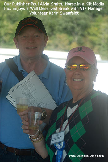 Cesar was right - it was and they were. There was camaraderie everywhere. The judges sat down and enjoyed some chat time in the shade of the big VIP tent where Karin Swanfeldt and our publisher Paul Alvin-Smith of Horse in a Kilt Media Inc., enjoyed a laugh and a glass of wine after a long day. He insisted! The competitors enjoyed after parties courtesy of Hof Mendenhall on Friday (Linda is a ham for the camera, here she is!) and Trilogy and dressageclinic.com