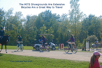 And being at HITS, if you were tired of watching dressage there were the jumping finals to watch. Who says dressage people don't like jumping. Lots of ambience with all the kids (and adults) cycling about. Which is a healthy way to traverse the showgrounds. Kids popped up to the vendors tents on horseback (well ponies, but you get the idea). There was a buzz!